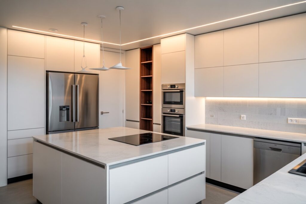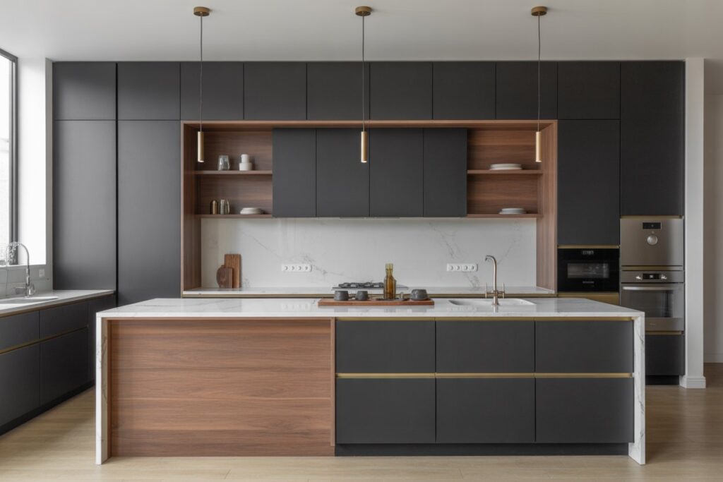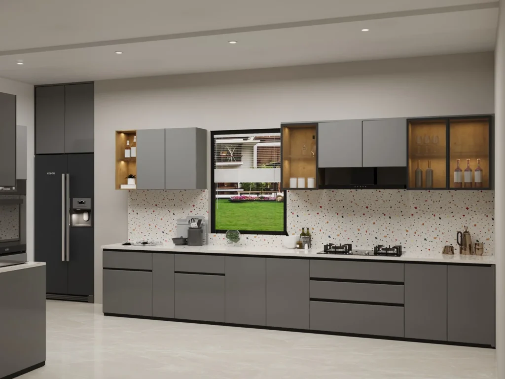 Modular Kitchen is a term used for the modern kitchen furniture layout consisting of modules of cabinets made of diversified materials which hold accessories inside, which can facilitate the effective usage of the spaces in a kitchen.