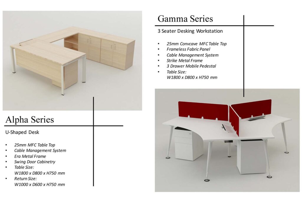 • Table Top: 25mm THK Particle board/ MDF/ Ply with Laminate